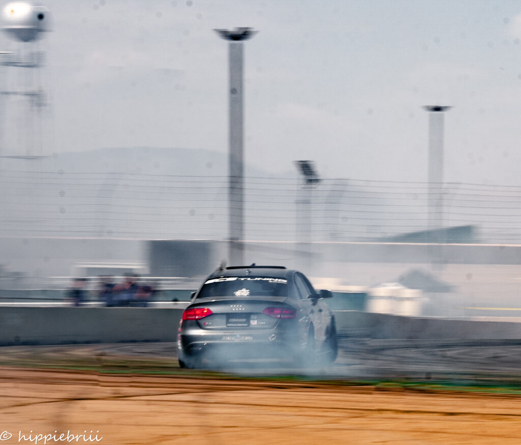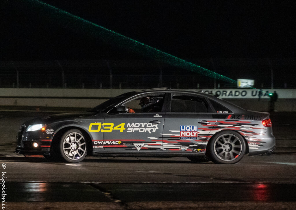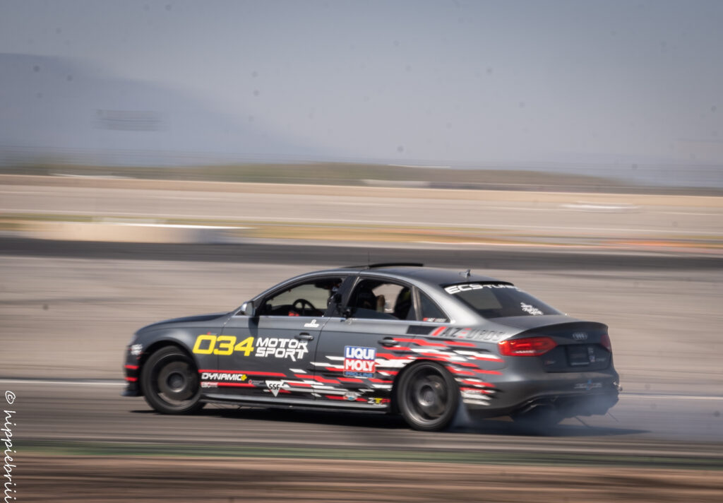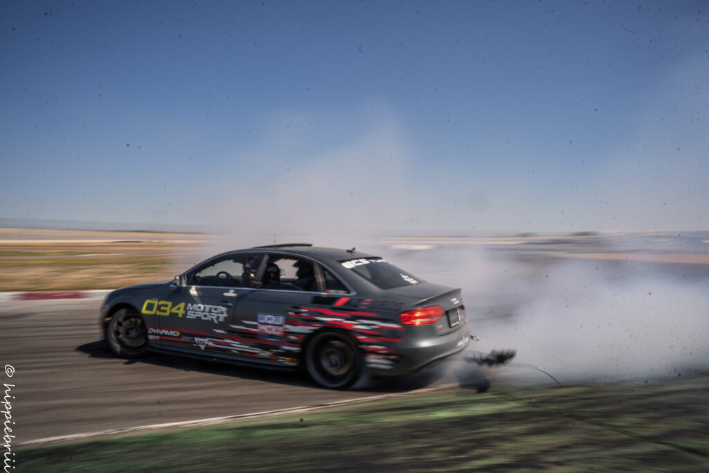 “Throughout the day we made changes. Every change was noticeable. This new chassis is completely different from my B5 S4 drift car; way more forward drive, and the steering is light and crisp. Power delivery is crazy linear. Late Friday during the last session, the clutch pedal started getting sticky. We were so stoked to have the car out ripping laps with no issues we ended the day. Waking up Saturday, we had a team meeting. My team decided it was worth missing some morning laps knowing rain was coming, throwing another curveball at us for setup of the car to swap the clutch. My plan was to install an upgraded clutch before the event, but we just ran out of time. So we threw the car up on jack stands and dropped the transmission. After replacing the clutch and a quick trip around the paddock. We were back on track. We dropped tyre pressure and made a shock change to really hook up the car. It really came around – hitting over 80mph on entry, the car was working well!