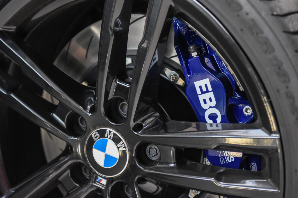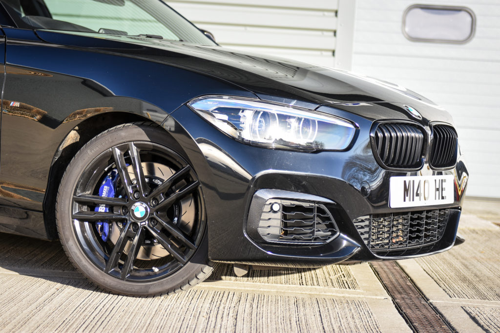 “The setup uses EBC’s UK-made four-piston calipers, 355mm two-piece floating discs and Yellowstuff pads. To say they work better than the originals is an understatement; the M140i has been transformed from an overpowered hatch into a track day weapon in the making, with the ability to pull your face half off on demand.