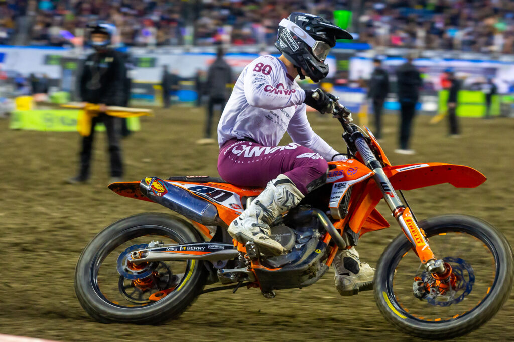 “Come the Main Event, we pulled the Holeshot here too, which is unheard of as a privateer! We were up against bikes I couldn’t even get my hands on if I had all the money in the world as they all have special equipment, and we beat all of them into the first turn on a stock bike.