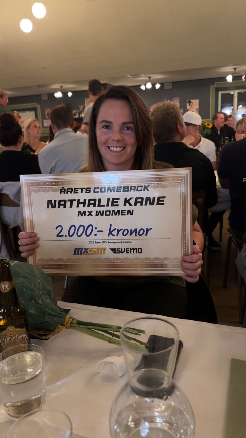 “I still did bring home one medal this year: a silver medal for 2nd overall in SM Sprint (Swedish Motocross Sprint event) to add to my collection and a very nice surprise to be given ‘best comeback of the year in the Swedish Championship’ at the prize ceremony on Saturday evening in Svemo. Really appreciated it and felt respected a lot by the federation and everyone.