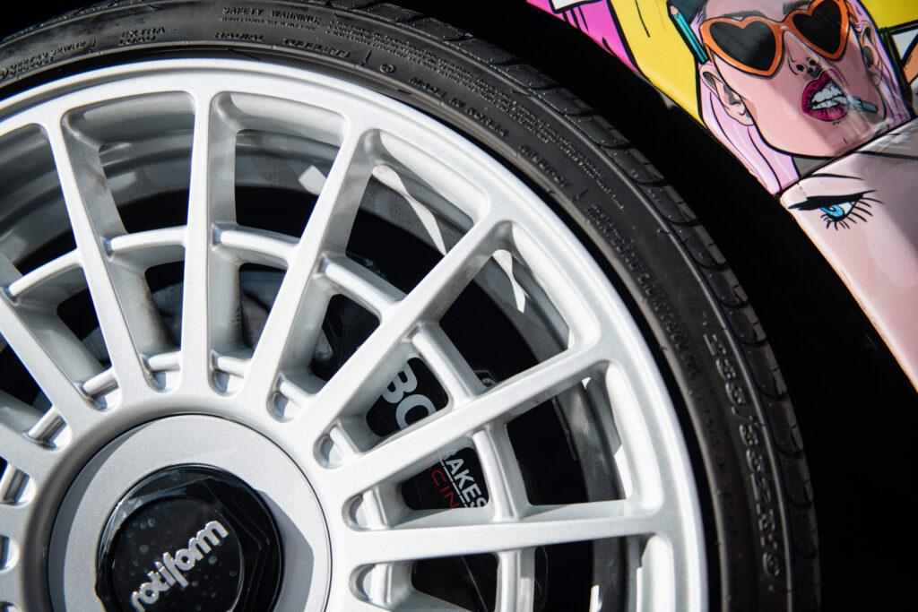This Audi TT features a striking pop art-inspired wrap. It boasts an EBC Brakes Racing 4-Pot Apollo Big Brake Kit under its Rotiform wheels.