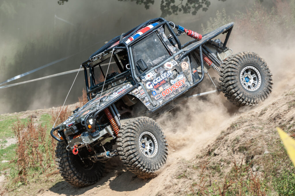 “We thunder off the line, our 6.2-litre V8 engine howling as Fox shocks soaking up the terrain as our Maxxis Trepador tyres find the grip to carry us she hammers the Welsh hills. Alex is working like the pro he is and has us clear of the winch sections before anyone can challenge us, and we stay hammer-down into the final lap. Bad Penny is a car like no other and she sprints to the finish to take the win at the very first TORR race against a skilled driver line up.