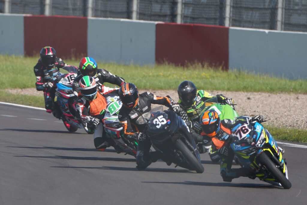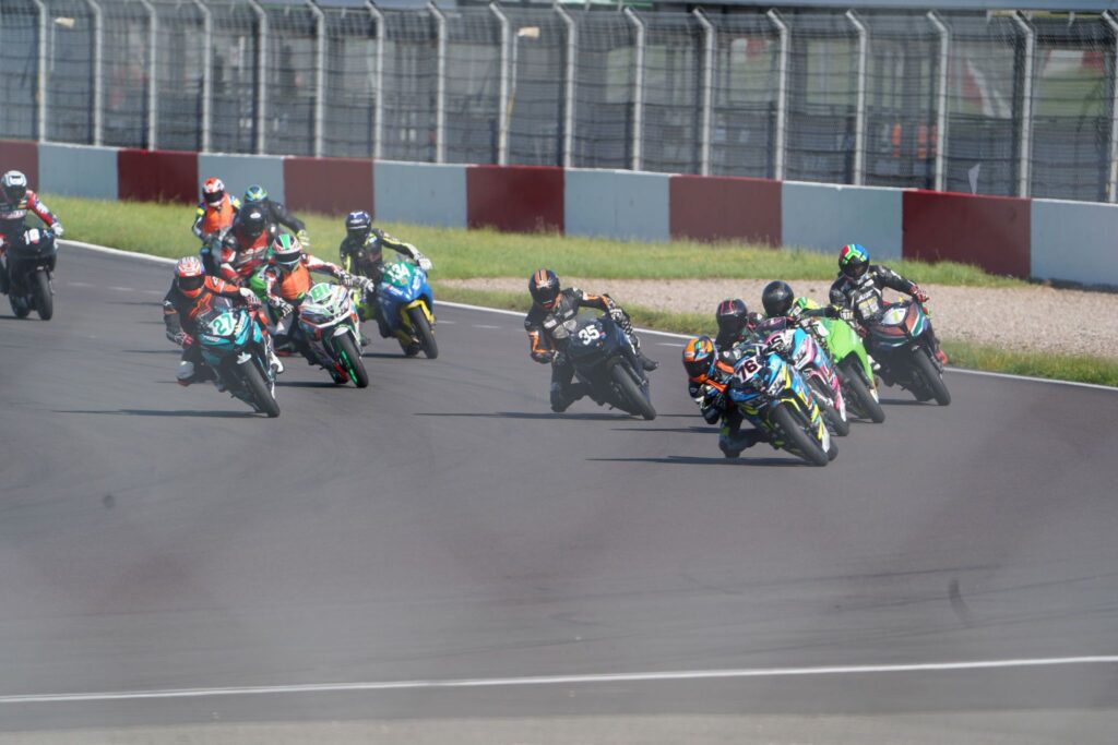 The Team Green Junior Cup – Part of the British Motorcycle Racing Club (‘Bemsee’) – allows riders between 13 and 18 years of age, providing a level playing field to illuminate the quality of the riders, not the investment in, or calibre of the machines they ride. To achieve this, the class is restricted to un-tuned production motorcycles.