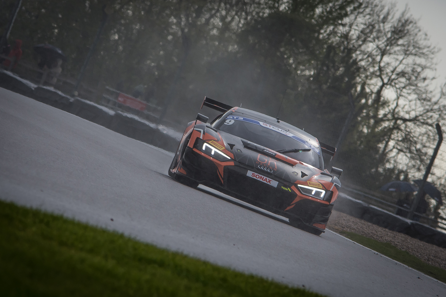 “The first 100-minute extravaganza of the season proved thrilling in more ways than one, as lunch-time rain drenched the circuit and meant wet tyres were the name of the game. On the start, Falvey converted pole into an early lead, fending off pressure initially from Taylor – who made a lightning start in the Super Trofeo – and then Erceg, who quickly made the most of the changeable conditions in his Audi R8 LMS.